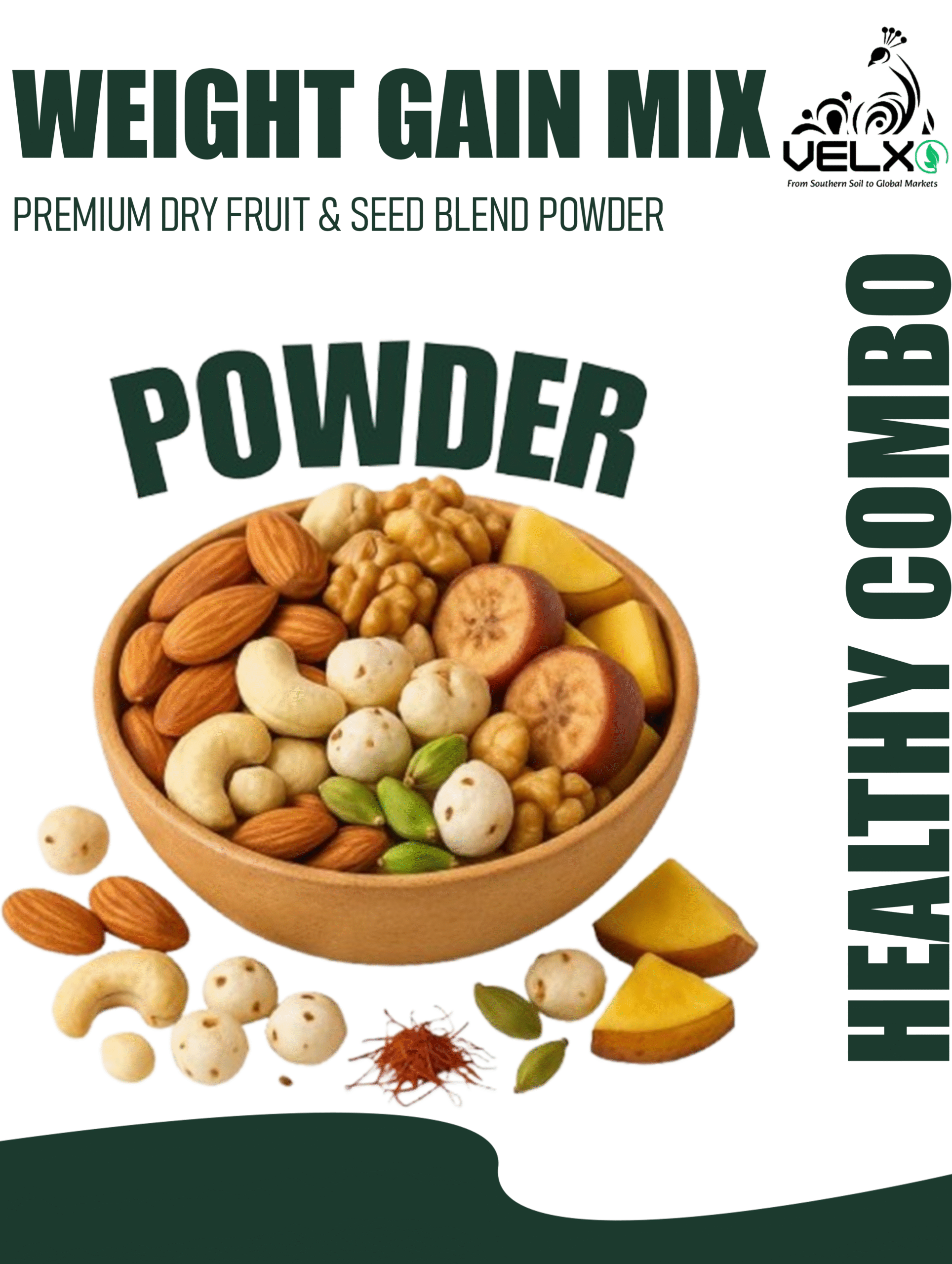 Looking to increase body mass in a natural and safe way? Our Weight Gain Mix is a powerful blend of nutrient-dense Ayurvedic ingredients designed to help you gain weight effectively. This carefully crafted Weight Gain Mix provides your body with essential calories, healthy fats, and herbs that support digestion, appetite, and muscle growth. Made with 100% natural ingredients and packaged with care by Velxo Organics, it is ideal for men, women, and teenagers who want a healthy and sustainable transformation.
